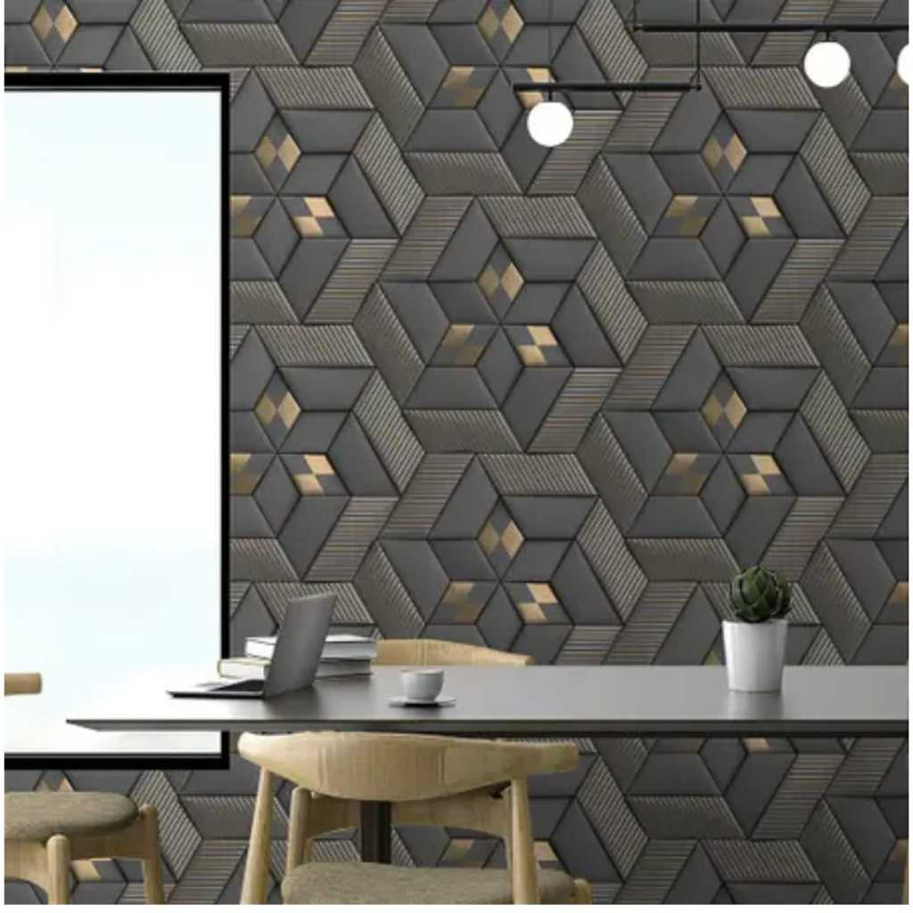 PAKET 6 ROLL Wallpaper Sticker Dinding Motif Geometric Abu kuning Cakra Putih kuning Geometric Putih kuning Sudah Ada Lem Perekatnya