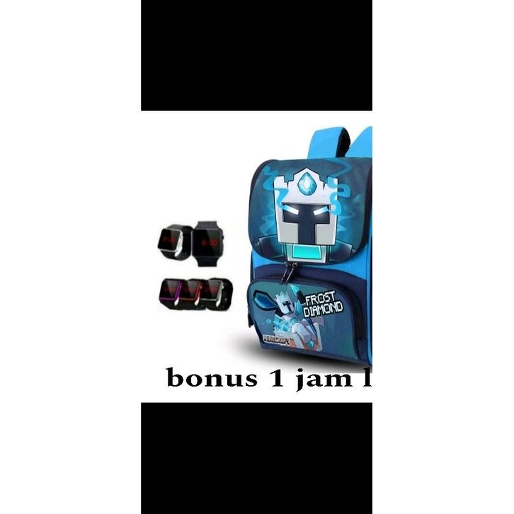 Tas Ransel Sekolah Anak Laki Mineraft / Tas Anak Cowok Karakter Free 1 Jam Led Termurah