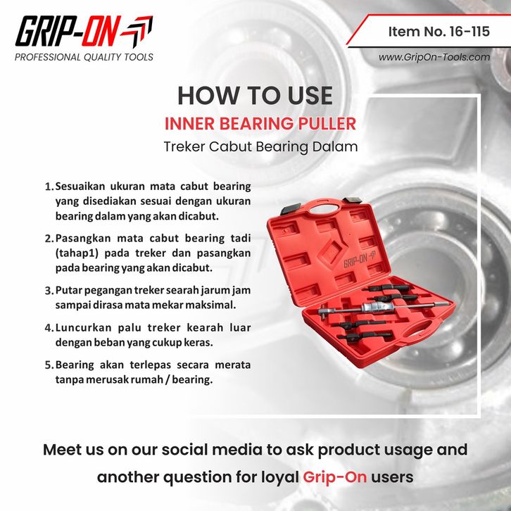Grip-On Inner Bearing Puller Treker Bearing Dalam Treker Cabut Bearing 16-115