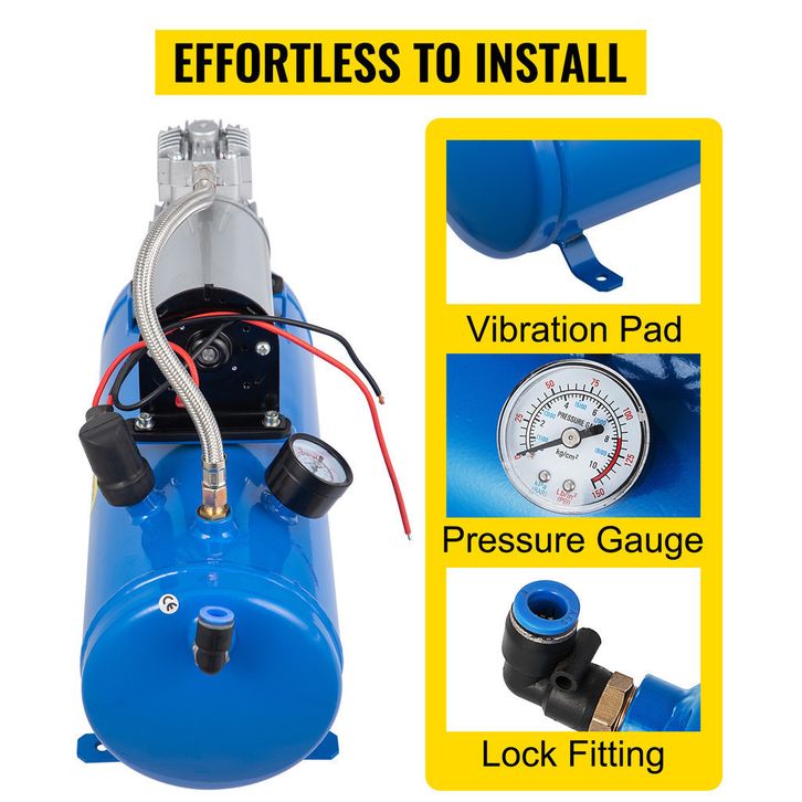 Kompressor Klakson Udara dengan Tangki 6L Pompa 150PSI untuk Klakson Udara Mobil Kereta Truk Perahu DC 12V 24V