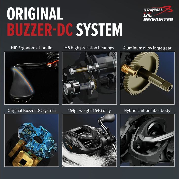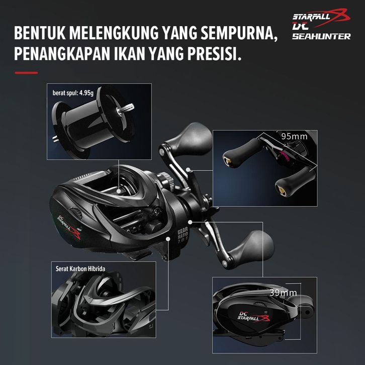 Reel BC Pancing Baitcasting Reel,Kontrol Rem Digital,6+1BB Ball Bearings,7.0:1 Gear Ratio,5Kg SeaHunter Starfall DC