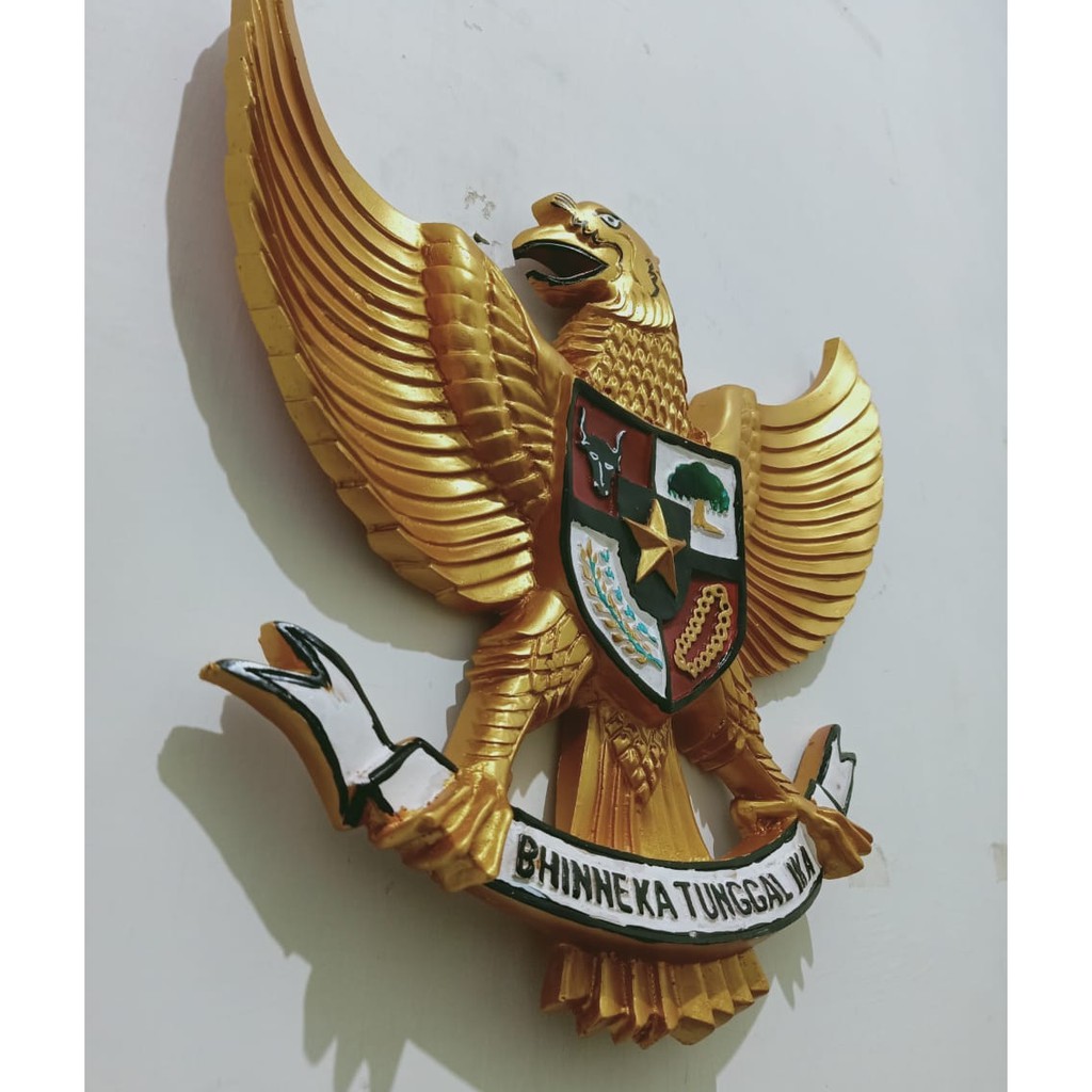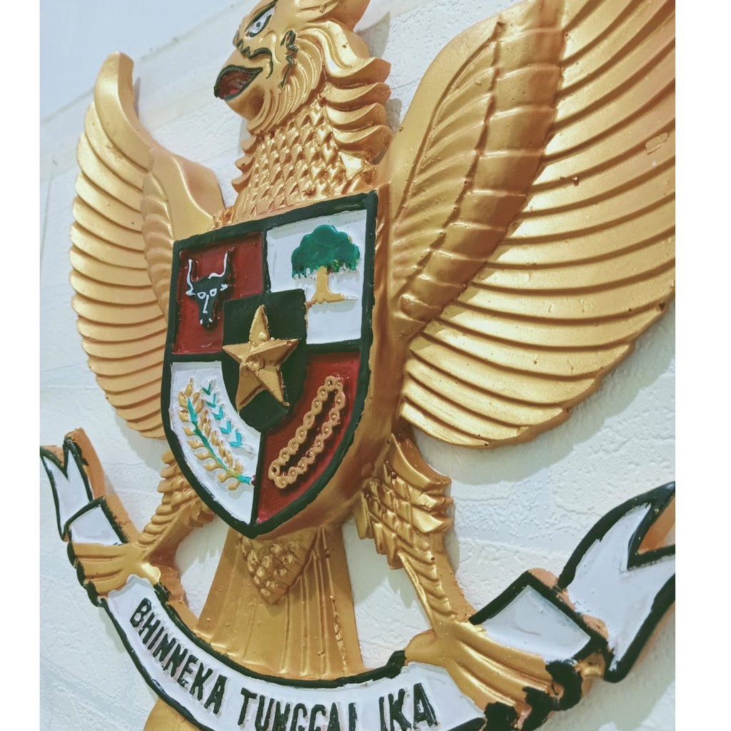 Hiasan Dinding Patung Garuda Pancasila 3 Dimensi Fiber Logo Burung Garuda kuning 45X45 CM (DATAR)