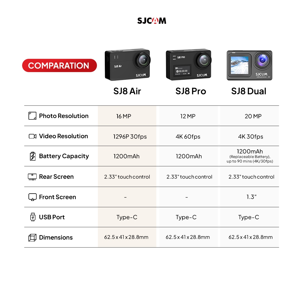 SJCAM SJ8 AIR TOUCHSCREEN ACTION CAMERA - BLACK PAKET BUNDLING