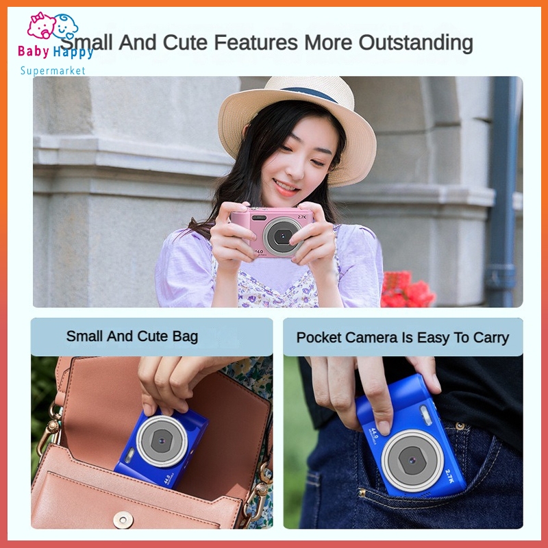 32GB 44MP KAMERA DIGITAL PORTABEL KECIL LAYAR IPS 2.7K ZOOM 8X KAMERA MINI DETEKSI WAJAH UNTUK SISWA