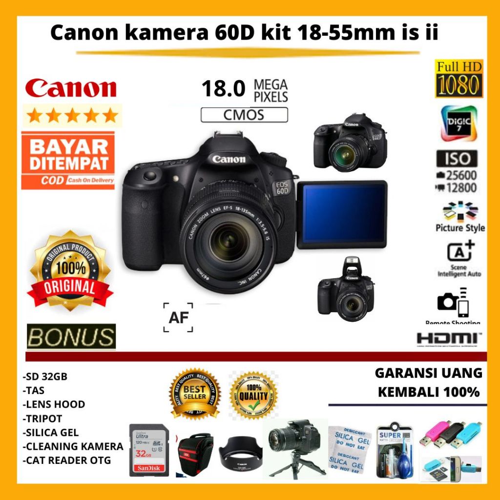 Canon 60D kit 18-55mm is ll FREE ACCESORIES KAMERA