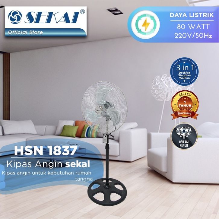 Sekai Industrial Fan Tornado 18 Inch Kipas Angin Industri 3 In 1 + Remote HSN 1837 RI Stand / Wall / Floor Fan