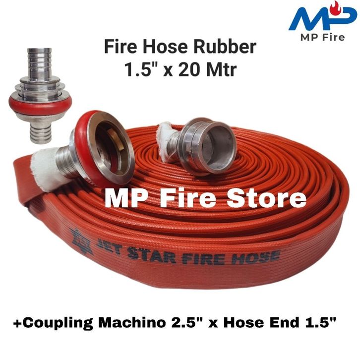 FIRE HOSE RUBBER 18 BAR 1.5 in x 20 MTR + MACHINO 2.5 in x HOSE END 1.5 in ALUMINIUM SILVER JETSTAR SELANG PEMADAM