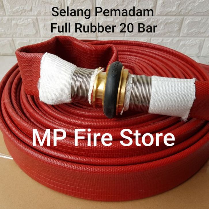 Fire Hose Full Rubber ZEKI 2.5 Inch x 20 Mtr + Coupling Machino 20 Bar Selang Pemadam Karet Merah