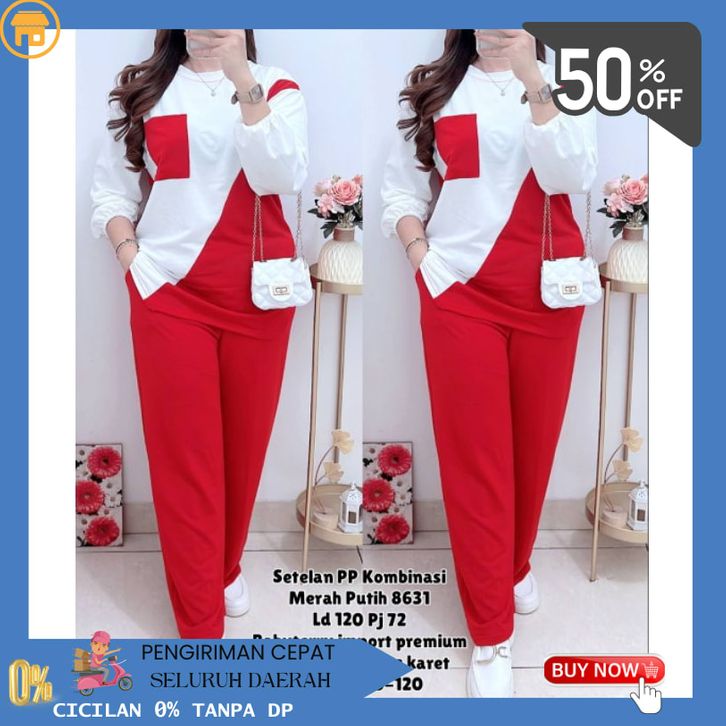 baju merah putih agustusan BW 8631 Setelan PP Babyterry Wanita Kombinasi Merah Putih Agustusan SET MERDEKA baju merah