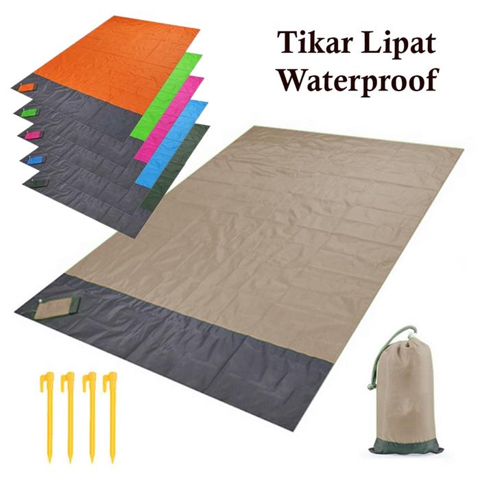 Tikar Piknik Lipat 140x200 200x210 Karpet Pantai Alas Tenda Camping Outdoor Waterproof Mat Anti Air Pouch