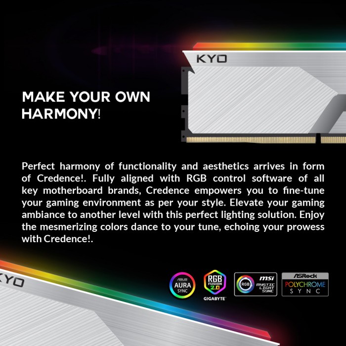 Memory KYO CREDENCE RGB DDR4 PC25600 3200Mhz 16GB 2x8GB Ram Dual