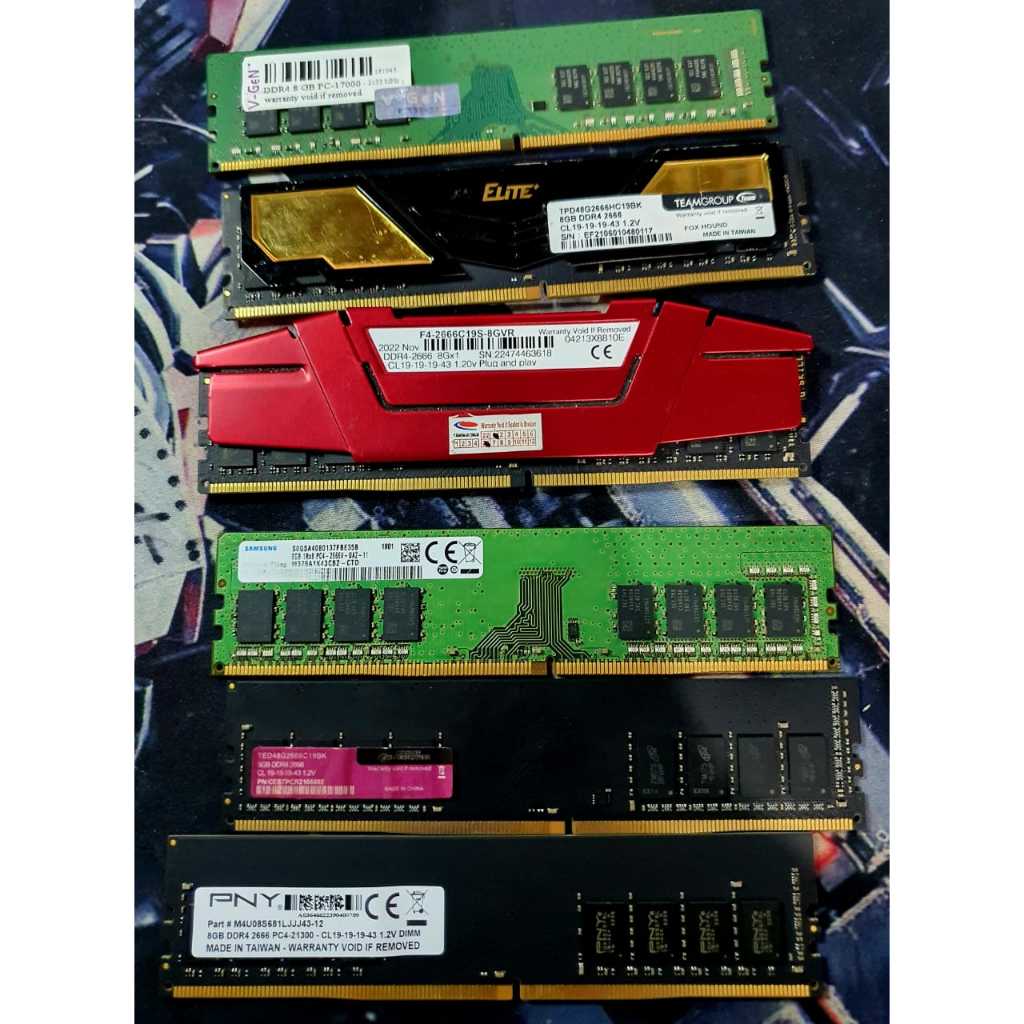 Micron 8gb 3200Mhz, KLEVV 8GB 2666Mhz, TeamElite 8gb 2666Mh, Geil 8GB 2666Mhz, Vgen 8gb 2133Mhz, Geil EVO 8gb 2400Mhz