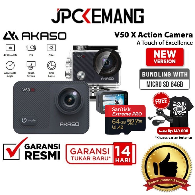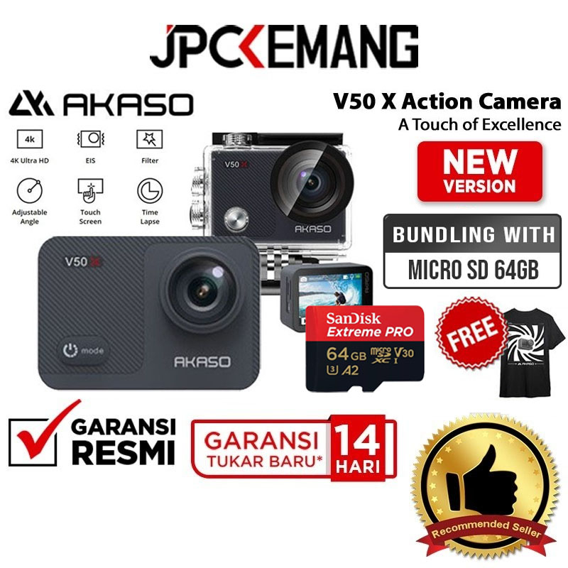 Akaso V50X Cube / New Version 4K Action Camera Free External Mic Type C + T-Shirt Atau Storage Mini Bag (Khusus Varian Tertentu) Garansi Resmi