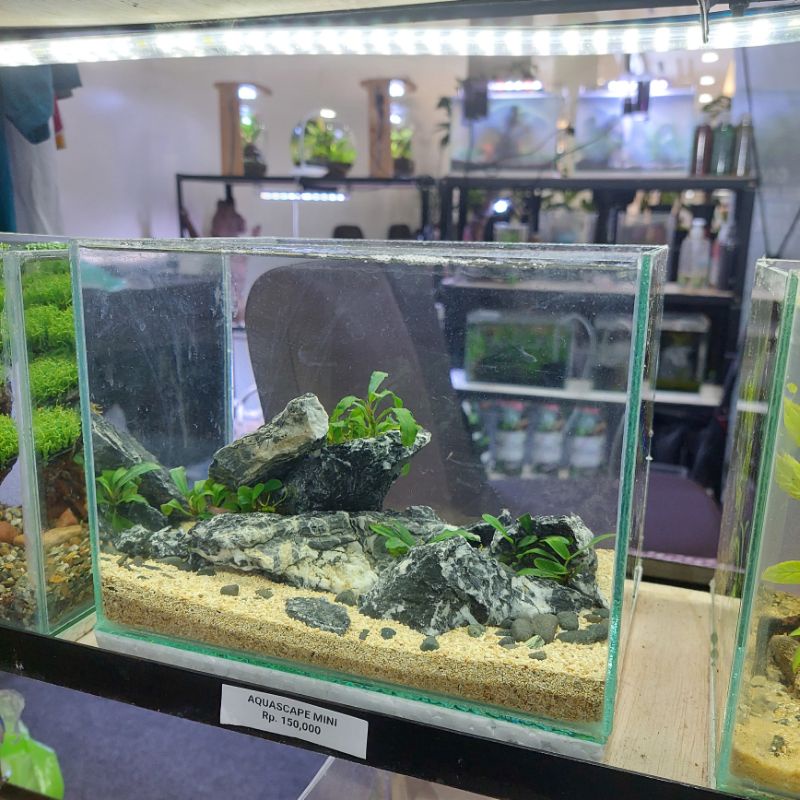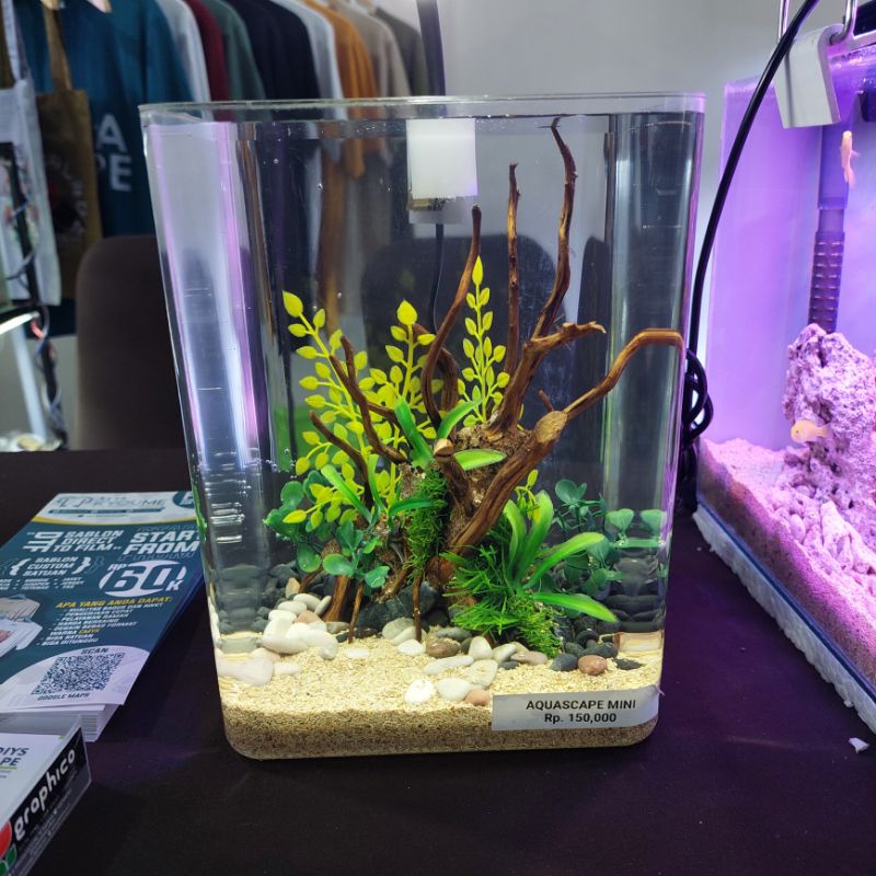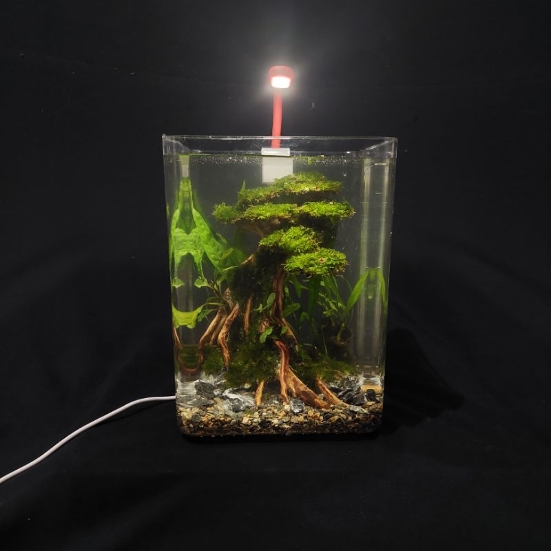 Aquascape Mini Fullset Tema Bonsai atau Natural dengan Lampu USB packing tebal