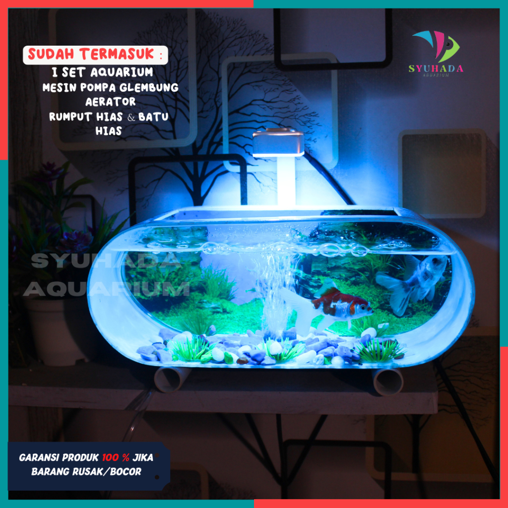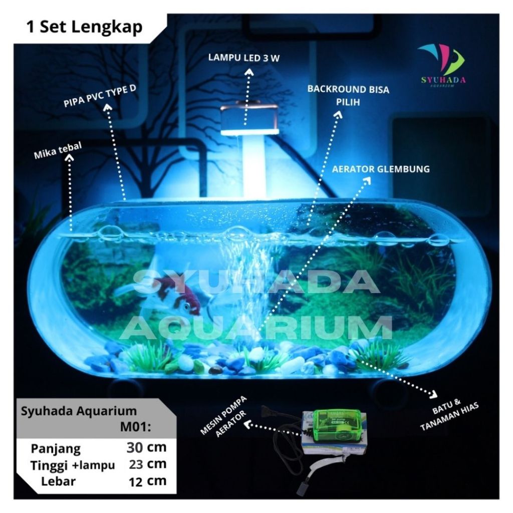 1 Set Aquarium Mini Pvc Plus Pompa Aerator Dan Lampu Led Akuarium Cupang Guppy Dekorasi Aquarium Minimalis