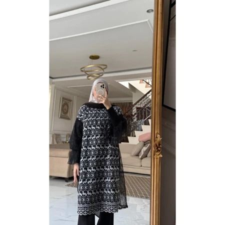 JULIA SET CELANA TUNIK BAHAN SATIN MIX CATBOR & CHANTILY BUSANA KONDANGAN PESTA WISUDA LAMARAN BRIDESMAID HARI RAYA