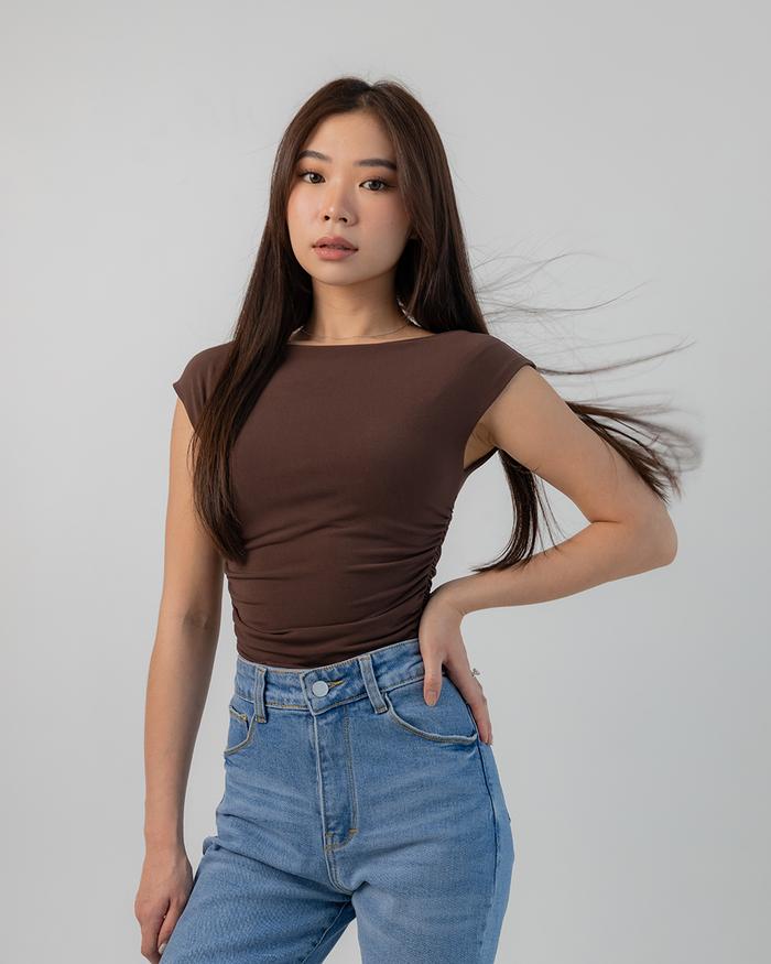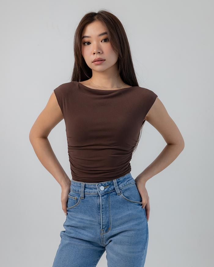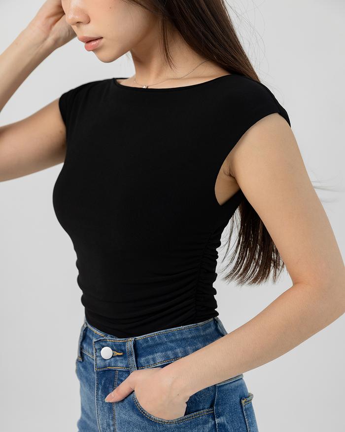 Evertops -1.0 / Mina Ruched Top (Boat Neck) / Atasan Wanita Tanktop - BLACK S