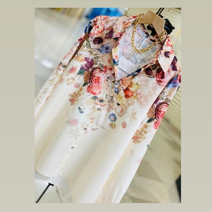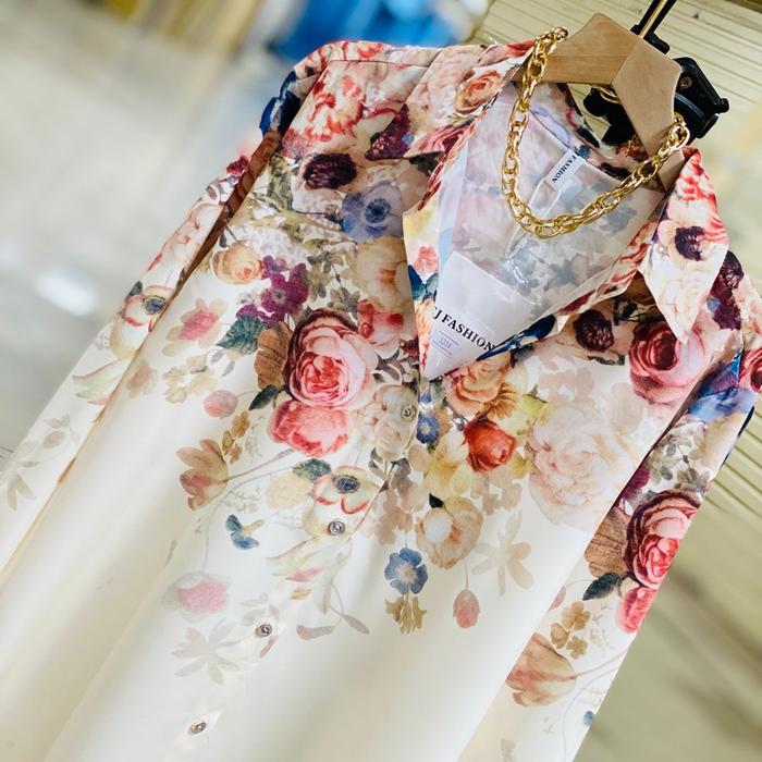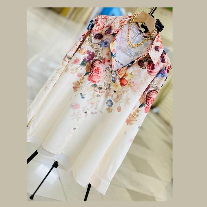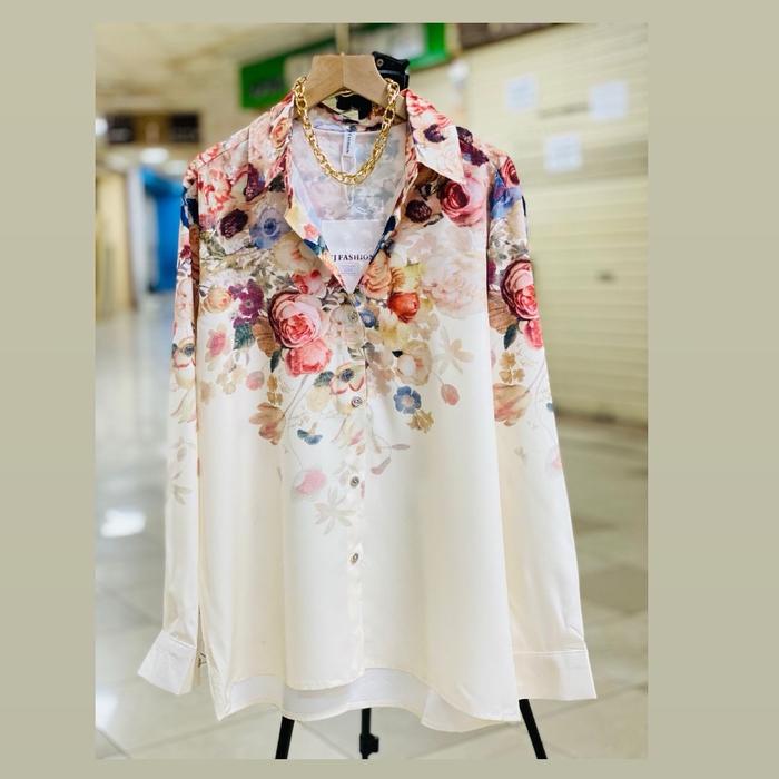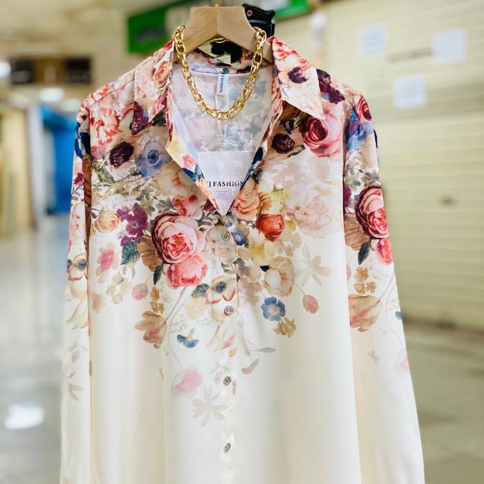 Kemeja silk motif flower terbaru LD 110cm-116cm PJG 70cm