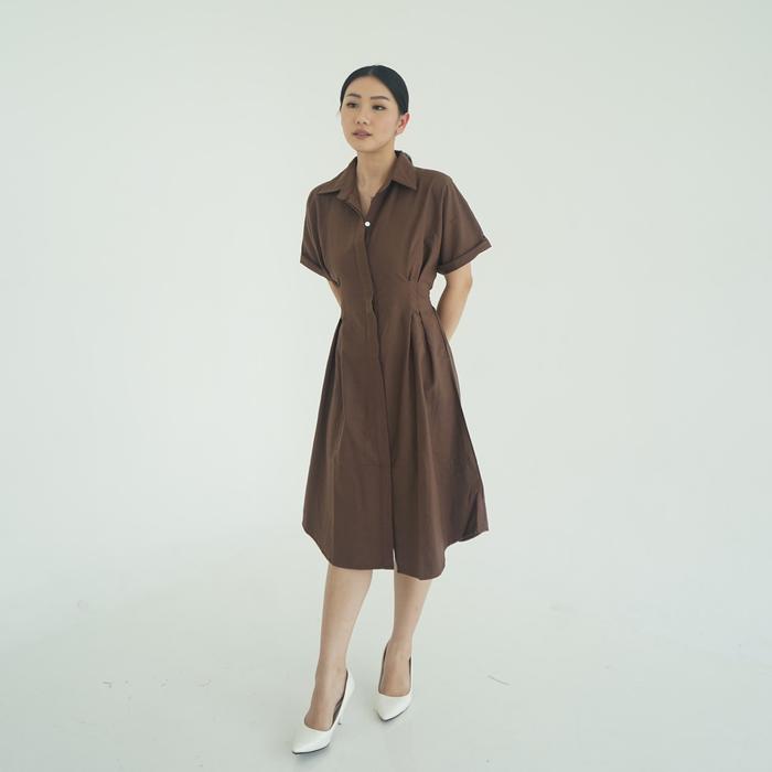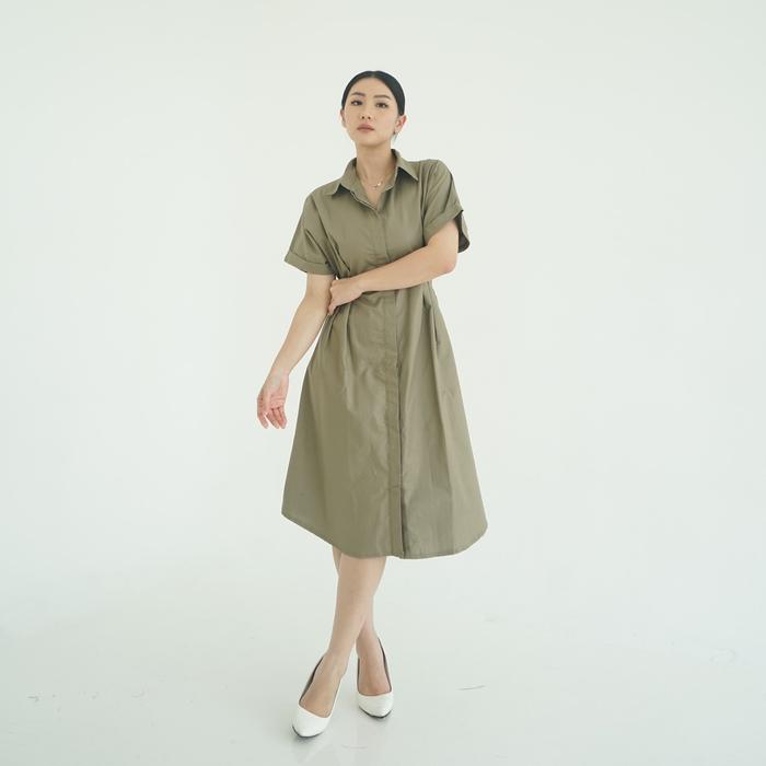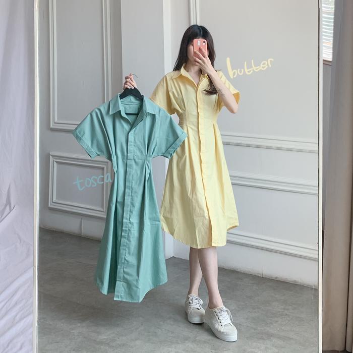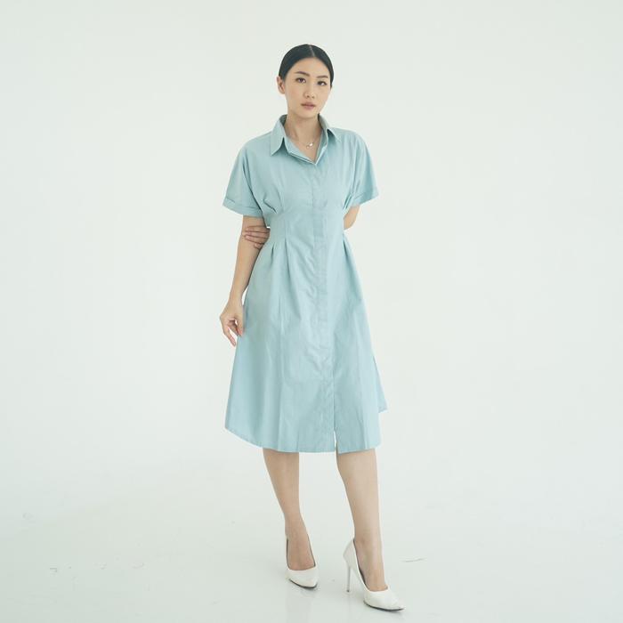 (Posy) Midi Dress Presley Plain Dress Bahan Cotton Gaun Wanita Kasual Slim-fitting - Aqua S-M