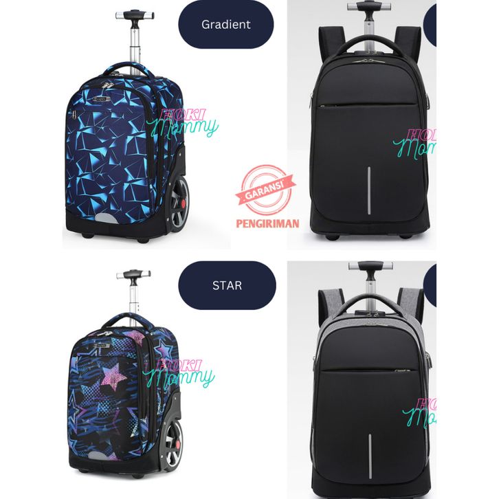 EKSKLUSIF Tas Trolley Sekolah 2-in-1 Roda Besar Kokoh efofs
