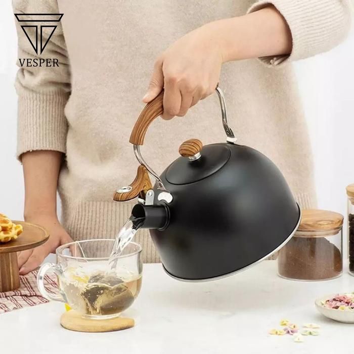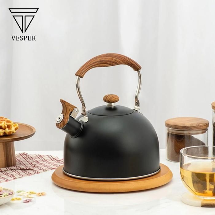 whistle kettle wood grain / ceret teko pemanas air kopi teh siul bunyi