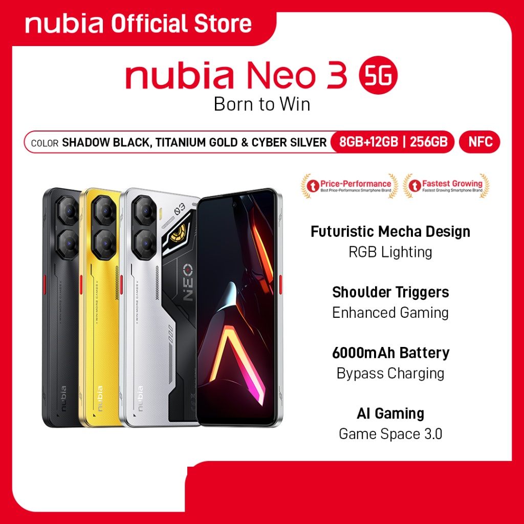 [Mall] NEW 2025 Handphone Gaming nubia Neo 3 5G RAM 20 GB (8 + 12 GB) ROM 256GB 6000 mAH Fast Charging 33W Gar