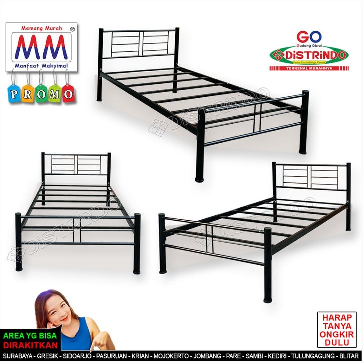 Ranjang Tempat Tidur Besi Minimalis Dipan Kasur 180x200cm 90 100 120 140 160x200cm Full Pipa Besi Kokoh Extra Penyangga