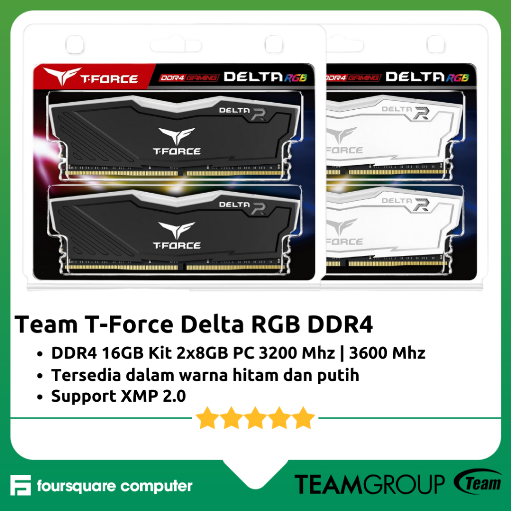 Team T-Force Delta RGB DDR4 16GB Kit 2 x 8GB PC 3200 | 3600 Mhz Hitam Putih Ram Memory Komputer Longdimm