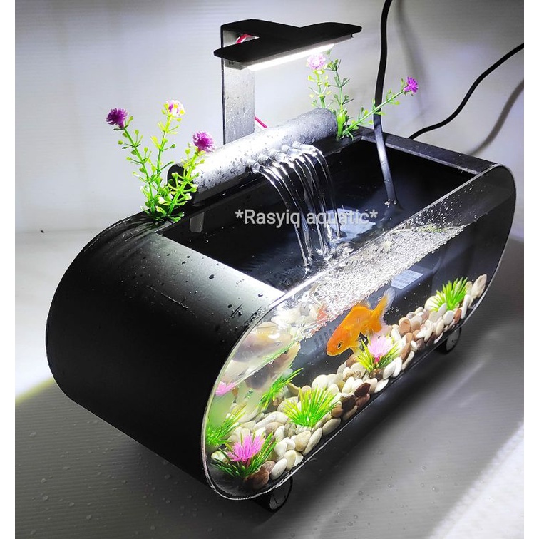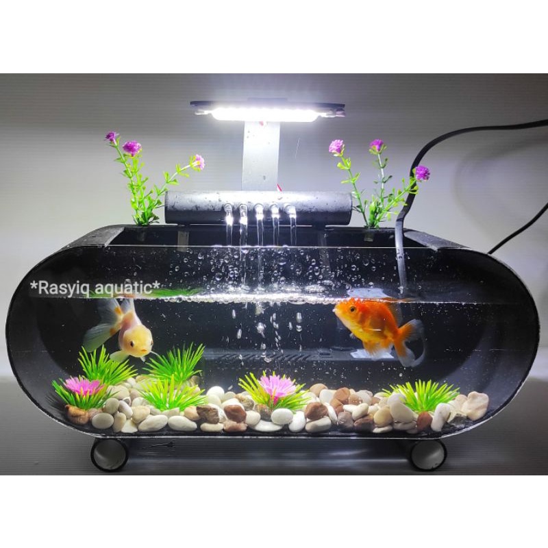 Aquarium Oval Akrilik PVC Minimalis Air Mancur Fullset Ikan Hias/Cupang