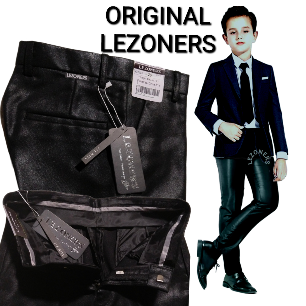 Celana Anak Laki Laki Formal Metalic Slim Fit Mengkilap Anak dan Dewasa Pria