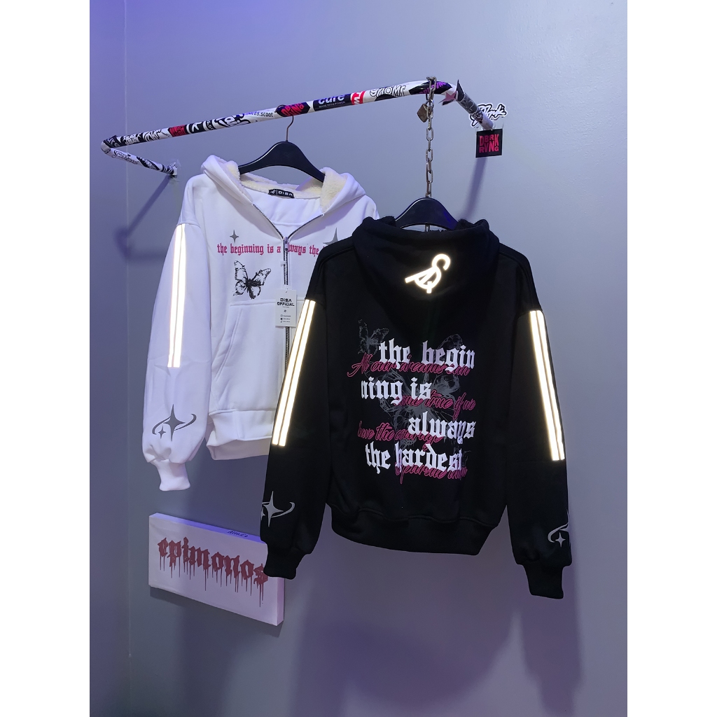 Disa I Hoodie Jaket Boxy Zipper Reflektif Menyala Unisex Sablon Foaming