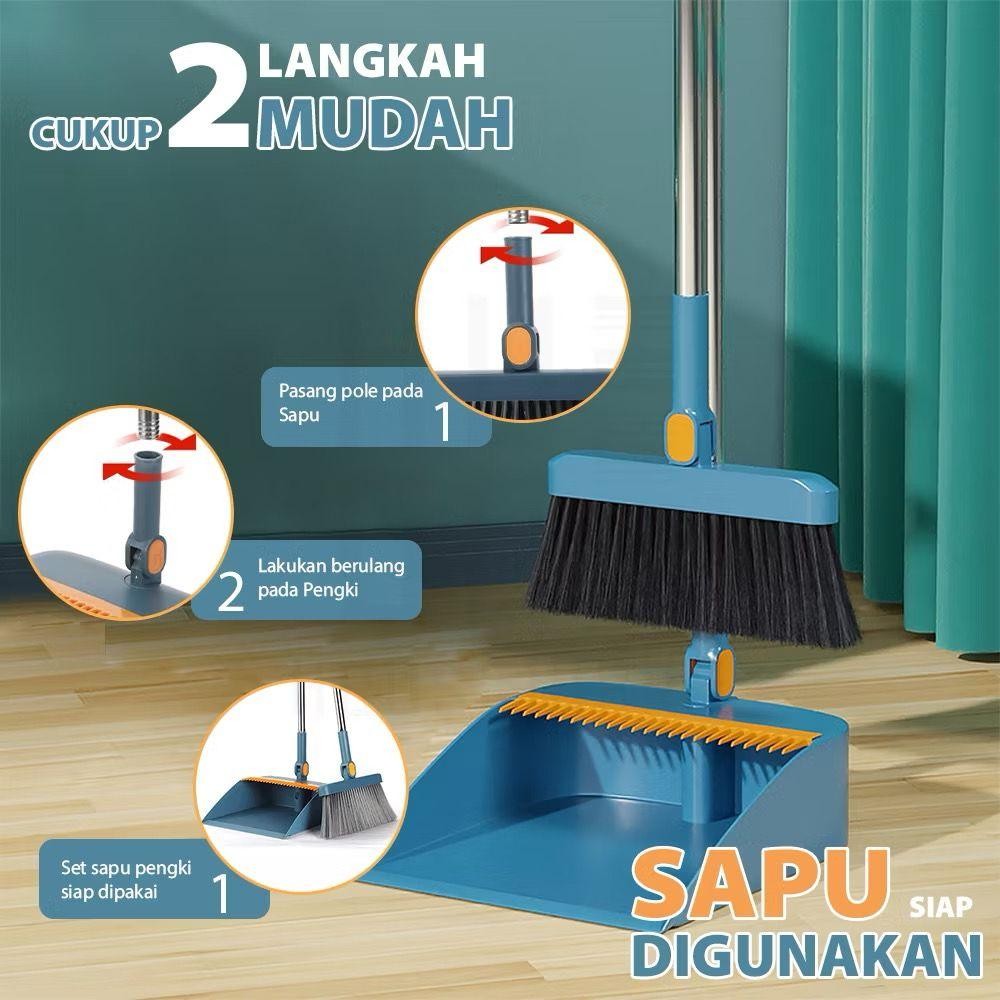 SAPU PENGKI LIPAT 2IN1 ALAT PEMBERSIH LANTAI SET SAPU PENGKI GERIGI PENYARING RAMBUT