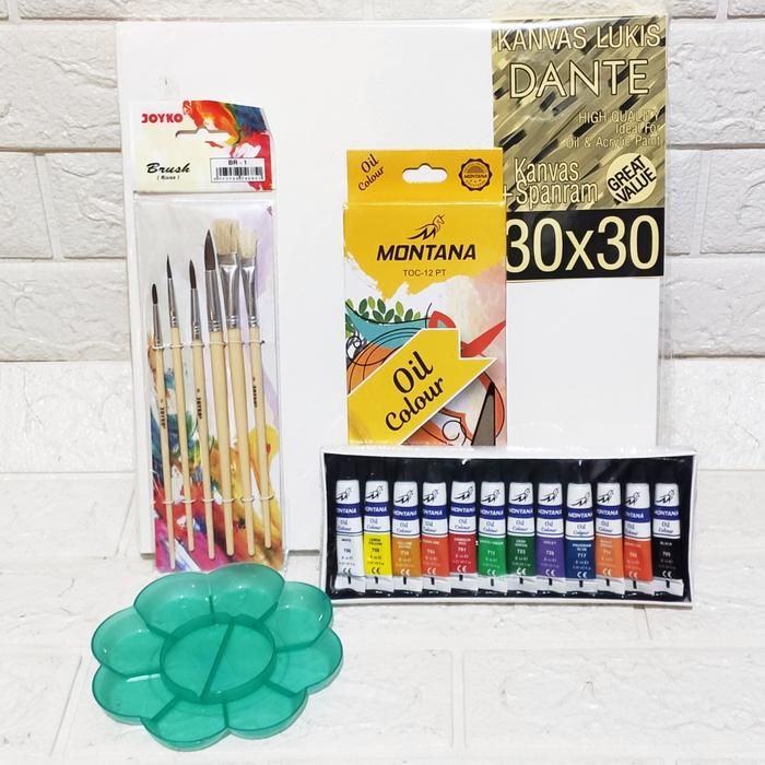 PAKET MELUKIS SET Kanvas 30X30 Kuas Palet