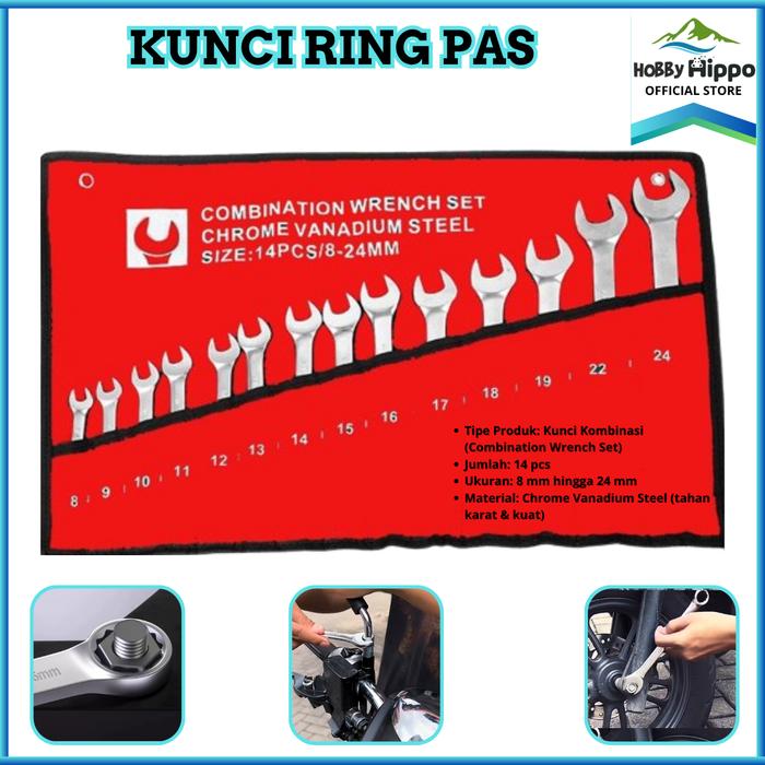 SET KUNCI RING PAS / SET LENGKAP KOMBINASI WRENCH KUNCI RING PAS SET 11 PCS JS