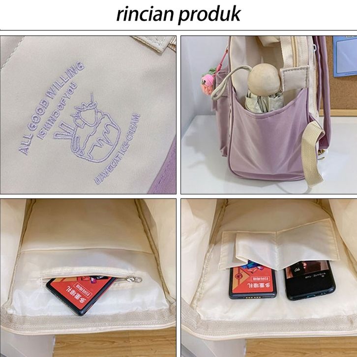 Murah Nine stars Warna macaron tas ransel wanita ori Korea tas sekolah anak perempuan kapasitas besar Elegan