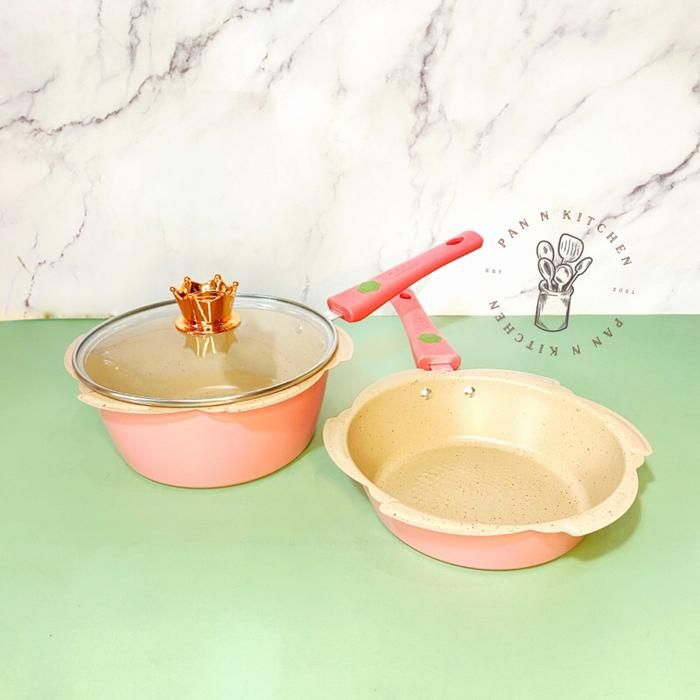 Flower Panci Set Mpasi/ Panci Bayi Warna Pink Marbel 2 In 1/ Panci