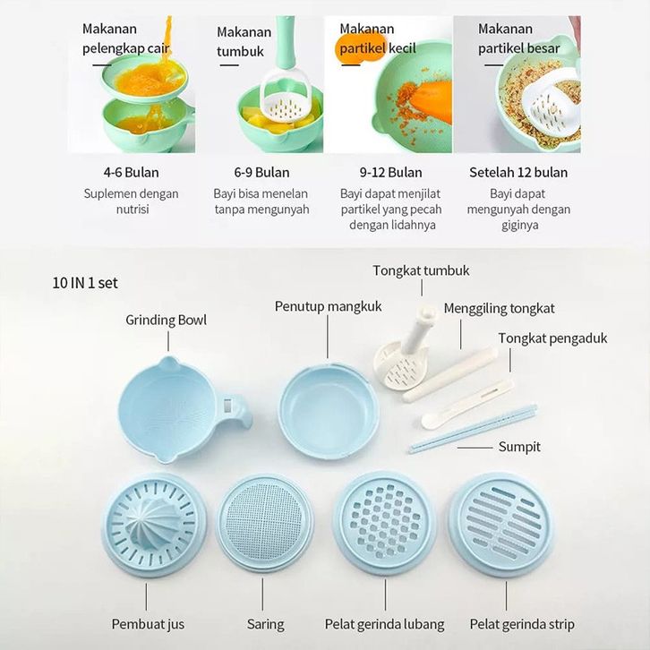 PROMO Multifungsi Grinding Bowl 10 in 1 Baby Food Maker Alat Pembuat Makanan Mpasi Bayi Alat Saring Mpasi Bayi