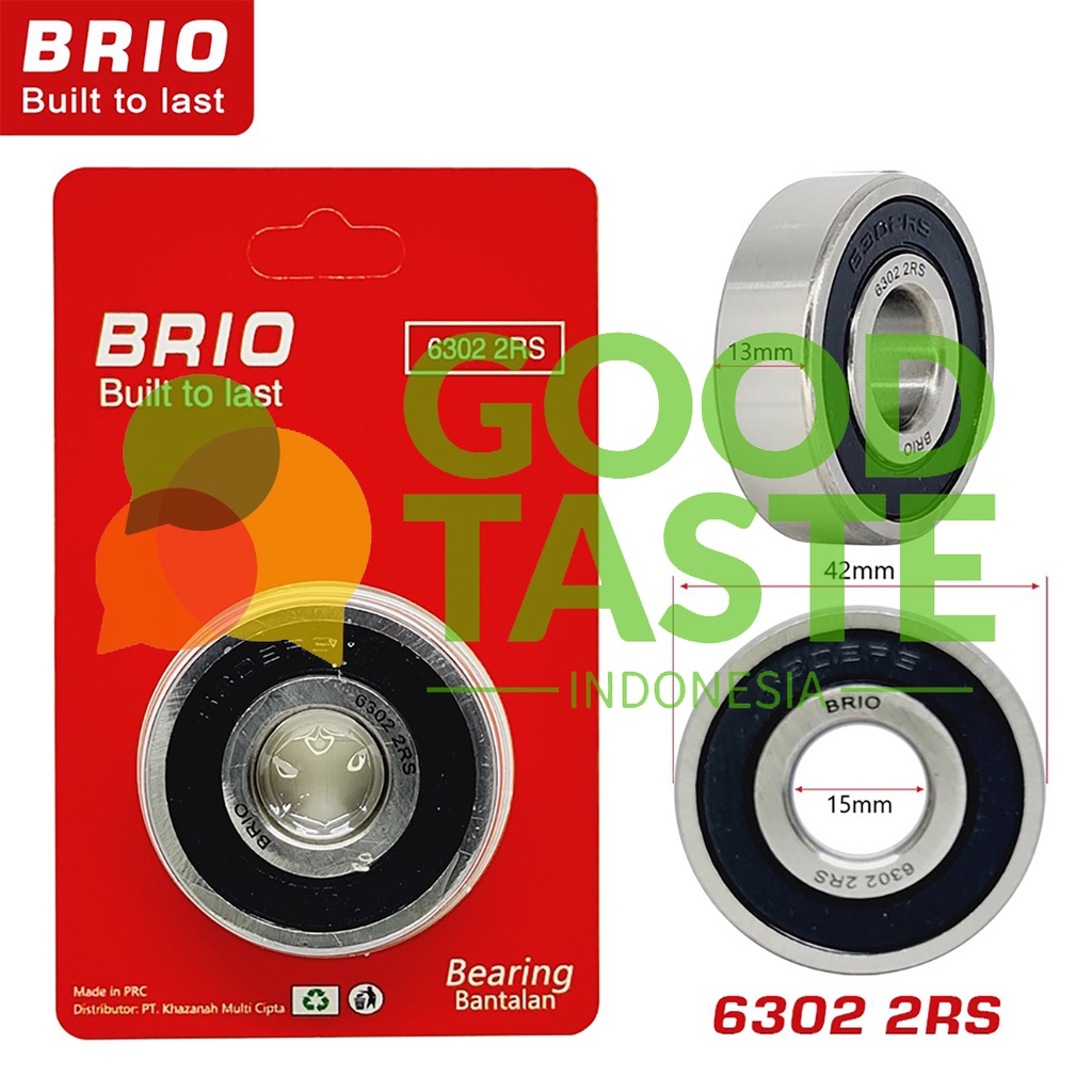 BRIO BEARING 6302-2RS 1pc KLAHER LAHER BERING KLAHAR LAHAR BANTALAN BOLA RODA DEPAN BELAKANG GEAR