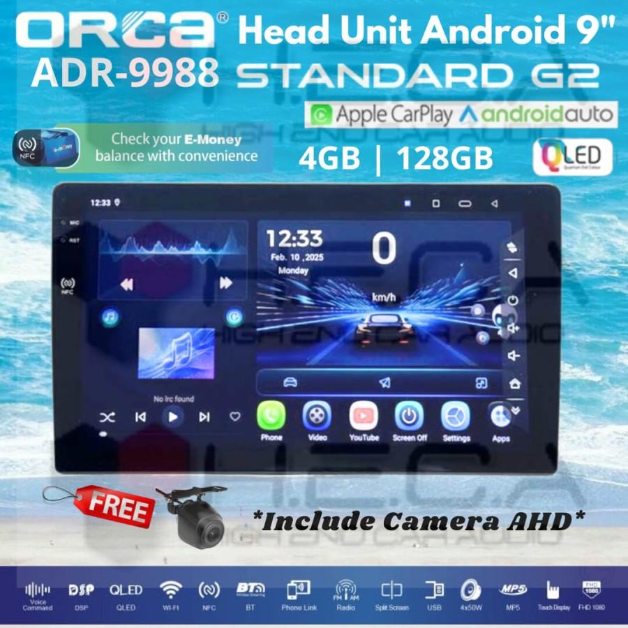 ORCA STANDARD G2 4/128 GB 9 INCH QLED NFC ADR-9988 HEAD UNIT MOBIL ANDROID 9" TAPE TV + REAR CAMERA AHD