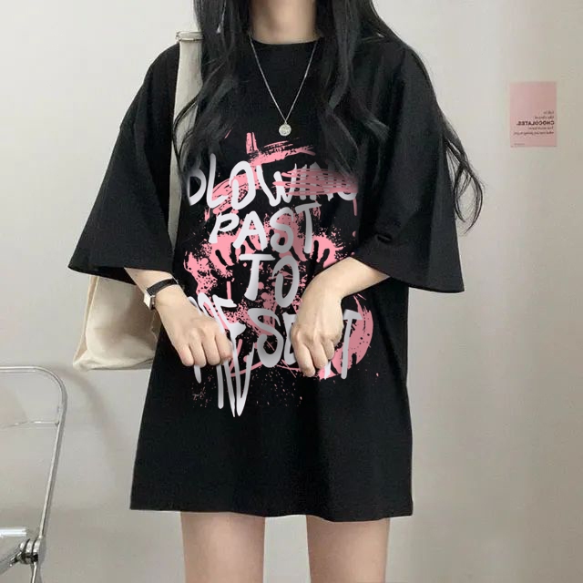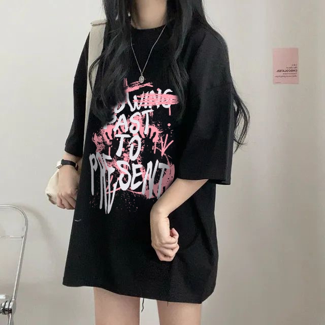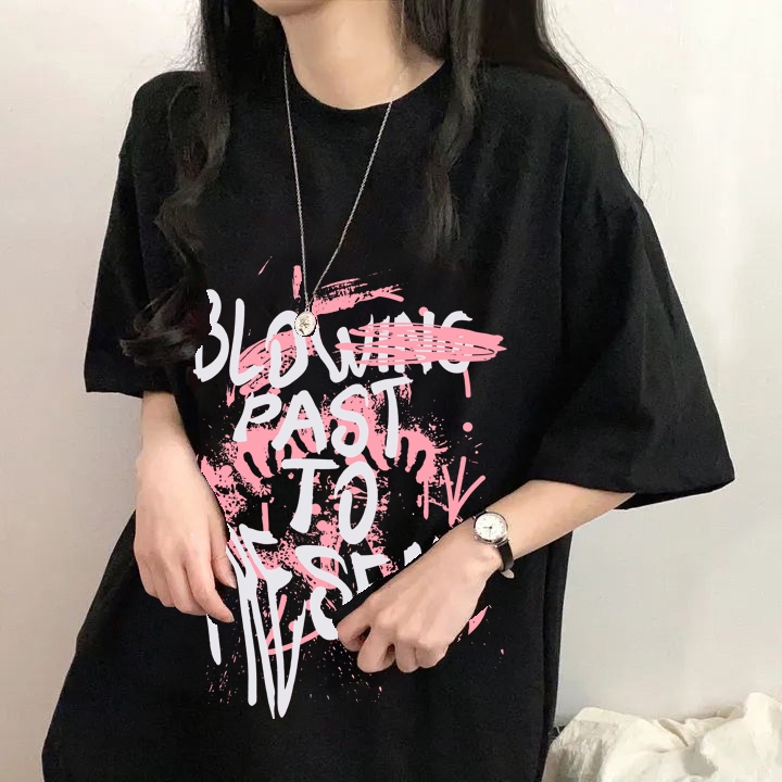 【Promosi Besar】Kulor. American Style Korean Style Pink English T Shirt Kaos Oversize Wanita Unisex Baju Bigsize Lengan P
