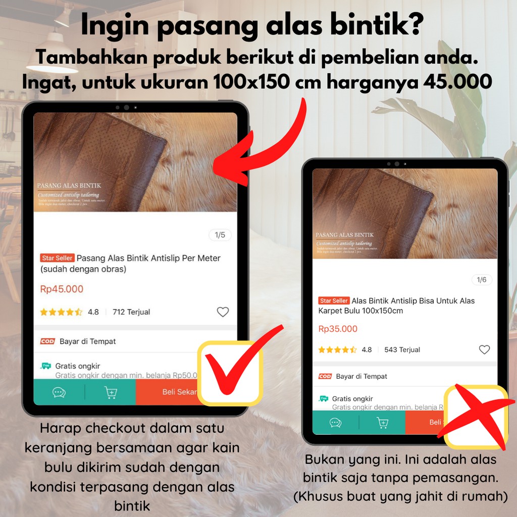Karpet Bulu Panjang / Kain Bulu Korea Halus / Russian Fur 100x150 cm