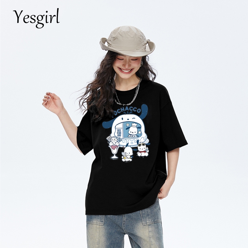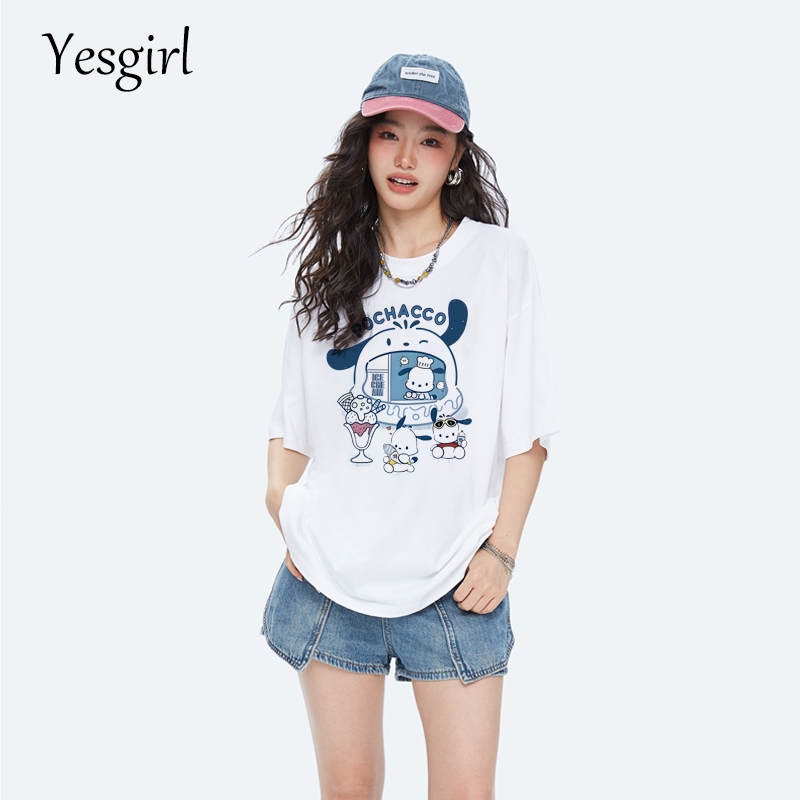 Yesgirl Korean style Pacha dog print kaos kasual longgar| Kaos Oversize Wanita | Fashion korean style baju kaos oversize