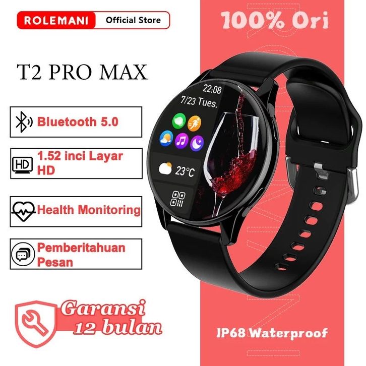 Rolemani 2025 NEW T2 Pro MAX Jam Smartwatch Original Bluetooth Call Monitor Blood Pressure and Blood Sugar Health