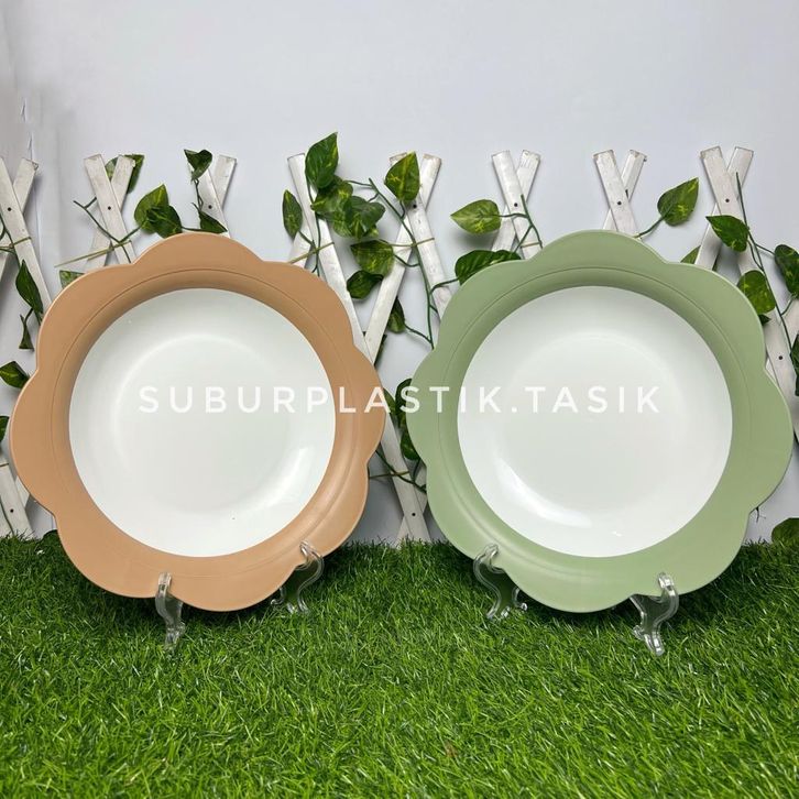 PROMO [6 & 12 pcs] Piring Bunga Asia Pacific Plastik Tebal 10 inch Besar Sajian Makanan Serbaguna