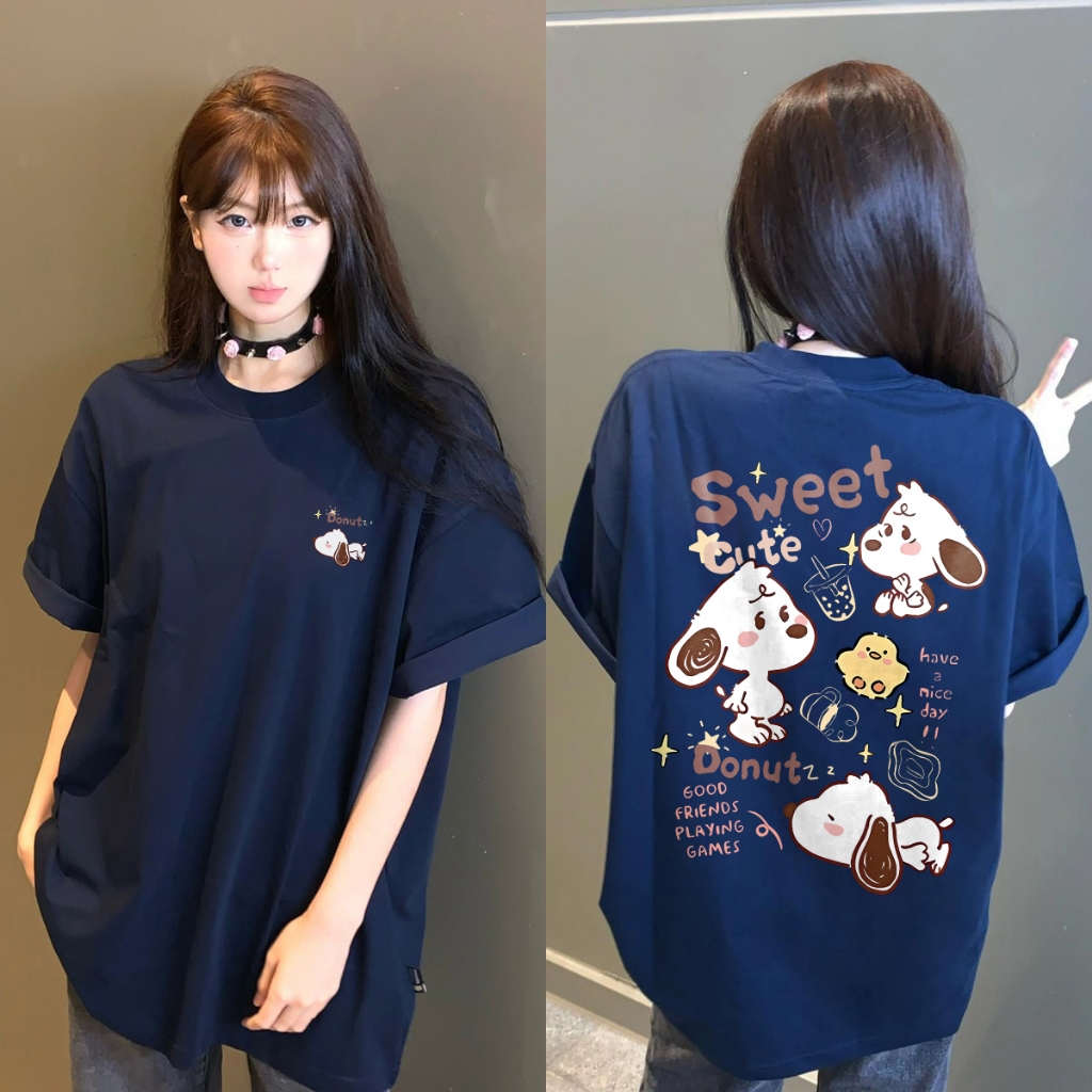 Forteid Biru laut T-shirt Lengan Pendek Baju Kaos Oversize Wanita Baju |kaus wanita korea Baju Atasan Wanita Terbaru (Po