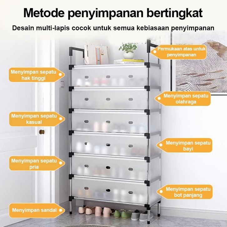 Rak Sepatu model sekarang Rak Serbaguna Rak Sepatu Tahan Debu Serbaguna Rak Gantungan Baju Rak Penyimpanan Bahan