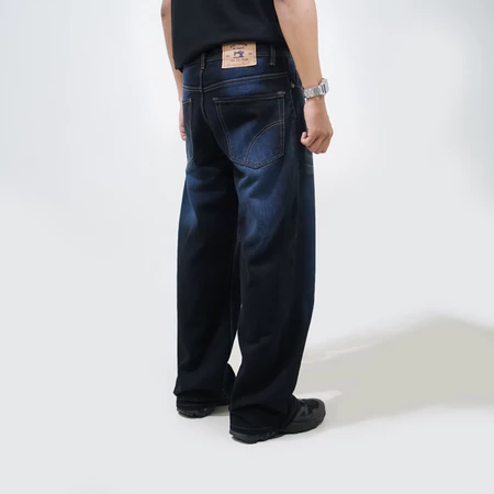 Celana Jeans Panjang Pria Skena Wide Leg Black Wishker Basic Baggy Pants Lebar Gombrong Pria Lost Fit Denim Non Stretch