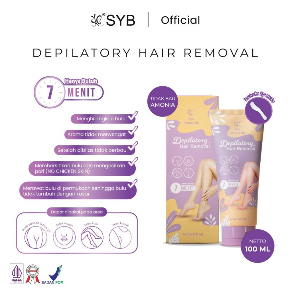 NEW SYB DEPILATORY HAIR REMOVAL 100 ML [PEMBERSIH BULU TANPA RASA SAKIT & DAPAT MENGECILKAN PORI] / 25ml