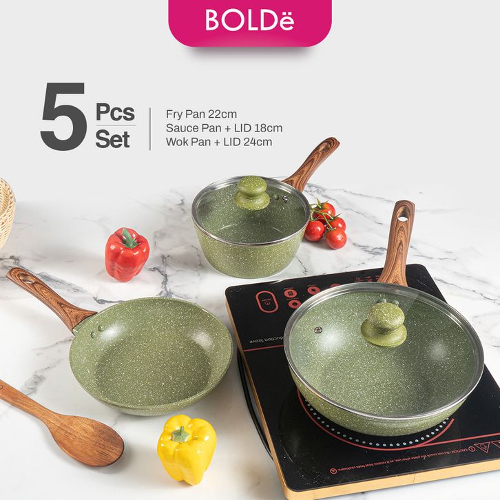 [Mall] BOLDe Organic Rose Pan Set - 5 pcs Pan Bolde Pan Anti Lengket Panci 1Set Anti Lengket
