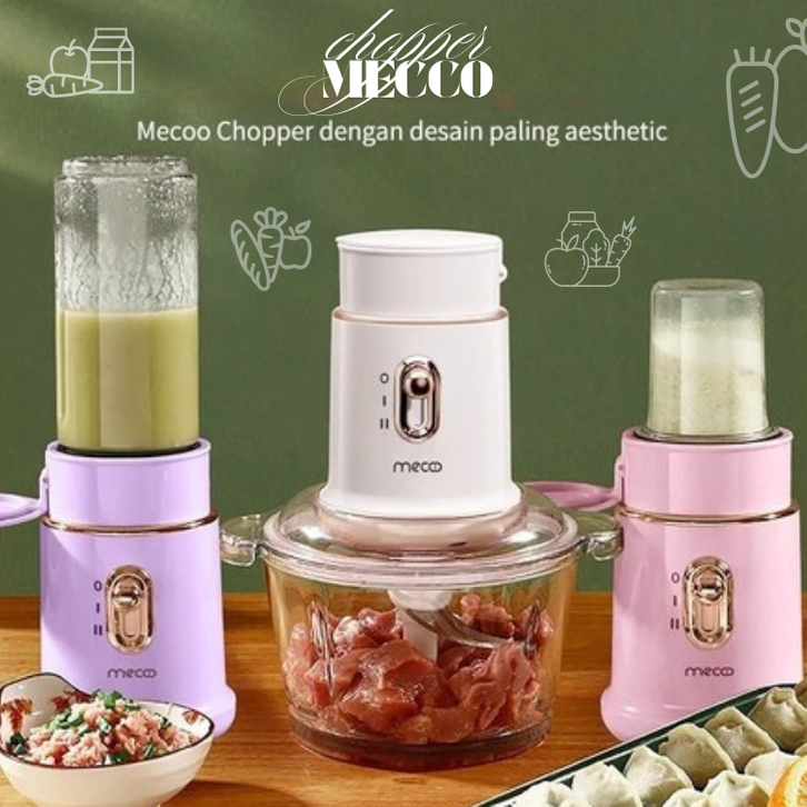Chopper Mecco Mini Elektrik Serbaguna TERBARU Blender Penghalus Bumbu / Daging MPASI Antibakterial Odorless 250W Low Wat